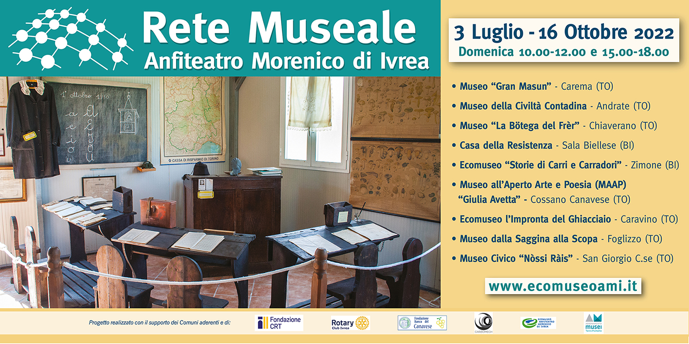 La Rete Museale Anfiteatro Morenico Ivrea (AMI) è un'iniziativa interprovinciale, innovativa, nata nel 2011 con l'intento di valorizzare i siti museali presenti sul territorio attraverso una duratura azione promozionale, volta a farli conoscere come parti di un sistema rappresentativo della cultura e delle tradizioni del territorio. Nello stesso tempo intende garantire un programma d’apertura certo e una soddisfacente accoglienza dei visitatori attraverso l’impiego di giovani che, dopo un programma di formazione per operatori museali, sono coinvolti nella gestione e apertura dei musei nei weekend della stagione estiva.